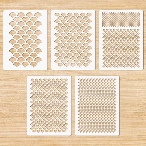 Molain 5 st fiskfjäll schablonset, återanvändbara ansiktsmålningsschabloner för smink, hantverk, vägg och möbler