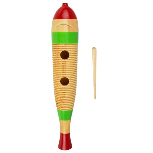 A-Star Guiroskrapa i stor fiskform i trä med visp, rytmslagverksinstrument