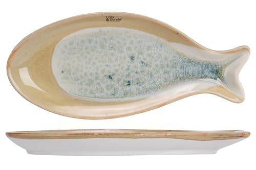 Cosy & Trendy Set med 4 aperitiftallrikar i keramik, navajo, 20 x 8,7 x h2 cm - fiskform