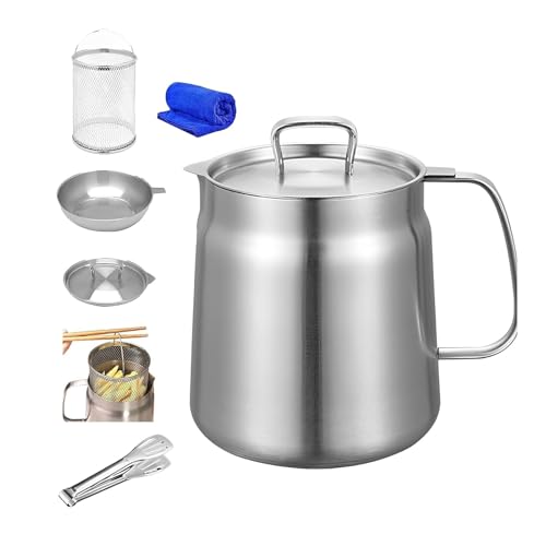 2 i 1 oljesilkruka 304 rostfritt stål fritös gryta stekning kycklinggryta for kök förvaring matlagning med sillock aluminium fiskgryta lättgreppat handtag med korg for hemmabruk(2L)