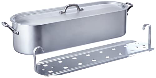 Pentole Agnelli fiskpanna med frö, lock och grill, med 2 handtag, BLTF-aluminium, matt, ekonomisk, silver