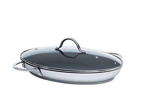 Pentole Agnelli Platinum Ovale fiskpanna med 2 handtag av rostfritt stål, silverfärger 30 cm silver/svart