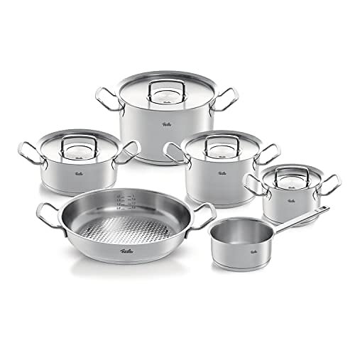 Fissler Original Profi Collection/rostfritt stål kastrullset, 5 delar, inkl. metalllock gratis skötsel av rostfritt stål – induktion [exklusivt för Amazon], silver
