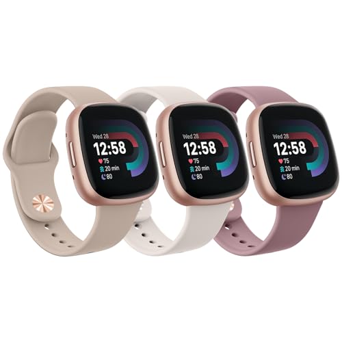 Vancle 3 stycken kompatibla med Fitbit Versa 4 armband/Fitbit Versa 3 armband/Fitbit Sense 2/Fitbit Sense klockarmband, silikonarmband, vattentätt sport ersättningsarmband, Klein 140mm-200mm, Silikon
