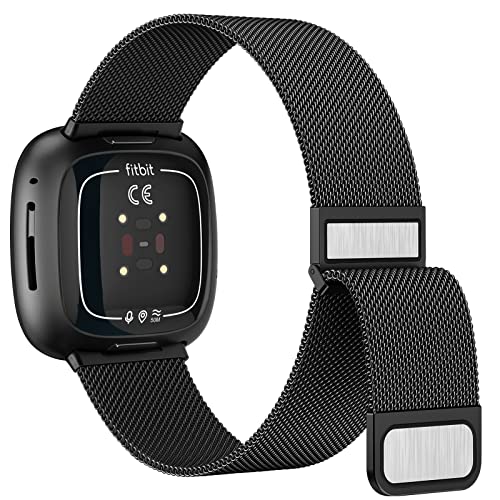 Amzpas Armband för Fitbit Versa 3 armband kvinnor män, rostfritt stål metall nät ersättningsarmband magnetlås klockarmband för Fitbit Versa 4 armband/Fitbit Sense armband/Fitbit Sense 2 (svart)