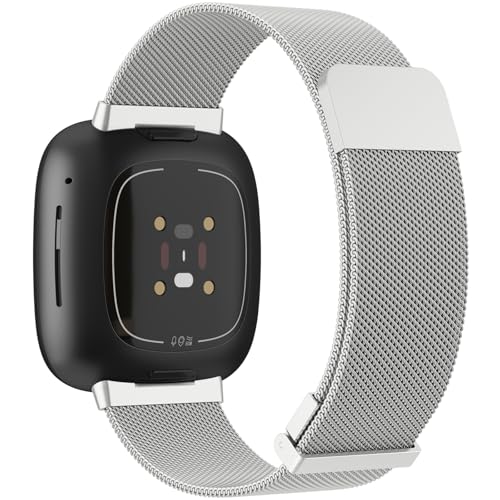 Mugust för Fitbit Versa 4 armband för män och kvinnor, rostfritt stål magnetisk metall ersättningsband för Fitbit Sense armband (silver)