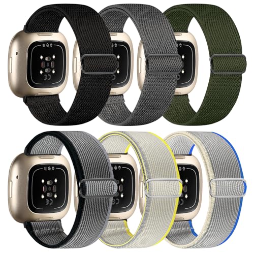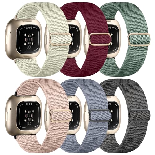 Chinbersky 6-pack armband kompatibelt med Fitbit Versa 3-armband/Fitbit Versa 4 armband/Fitbit Sense armband kvinnor och män, justerbar stretchning nylonsportband för Fitbit Versa 4/Versa 3/Sense