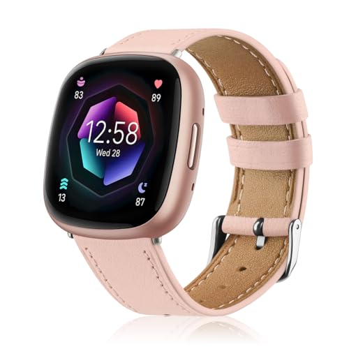 OFFCUP Läderrem kompatibel med Fitbit Versa 3/4/Sense/Sense 2 för kvinnor män barn, äkta läder sportremmar ersättningsarmband, 18x8x1 cm