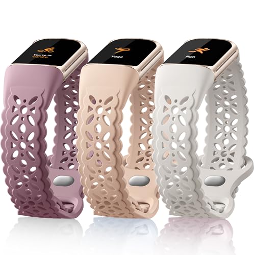 Epova Silikonarmband kompatibelt med Fitbit Charge 6-armband – 3 stycken blommig spets mjuk andningsaktiv justerbar sport ersättningsarmband för Fitbit Charge 5 armband kvinnor
