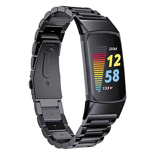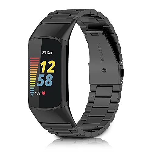 Chofit Ersättningsremmar kompatibla med Fitbit Charge 5 rem, band metall rostfritt stål affärsband armband för laddning 5 aktivitetsmätare (svart)