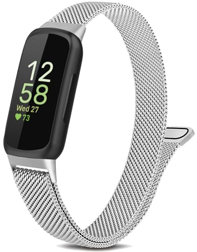 Gimuk remmar kompatibla med Fitbit Inspire 3 rem, metall rostfritt stål justerbar sport ersättning business armband rem kompatibel med Fitbit Inspire 3 kvinnor män liten stor, Small/Large, Rostfritt