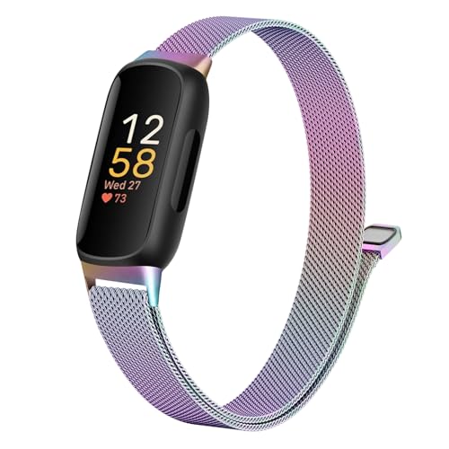 Faliogo Metallrem kompatibel med Fitbit Inspire 3 armband för kvinnor och män – justerbart rostfritt stål ögla sportband för Fitbit Inspire 3 fitness tracker, färgglad