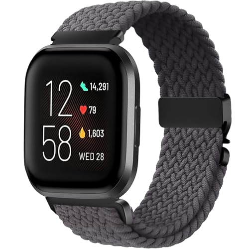 VELULYX Nylonflätat armband Kompatibel med Fitbit Versa 2/Fitbit Versa/Lite, Elastiskt armband för Kvinnor Män