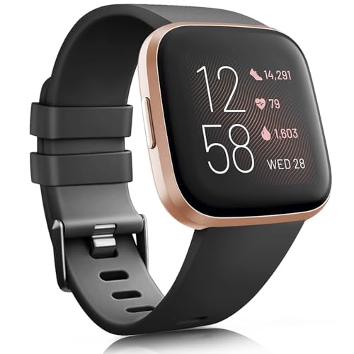 Oielai För Fitbit Versa 2 armband/Fitbit Versa armband, silikon sport klassiskt ersättningsband kompatibelt med Fitbit Versa Lite/Versa 2/Fitbit Versa för dam herr, liten svart