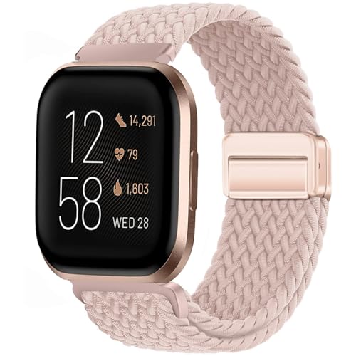 System-S Armband 22 mm av nylon för Fitbit Versa 4/Versa 3/Sense 2/Sense/Versa Lite/Versa 2/Versa Smartwatch i rosa, rosa, Eine Grösse, Klassisk
