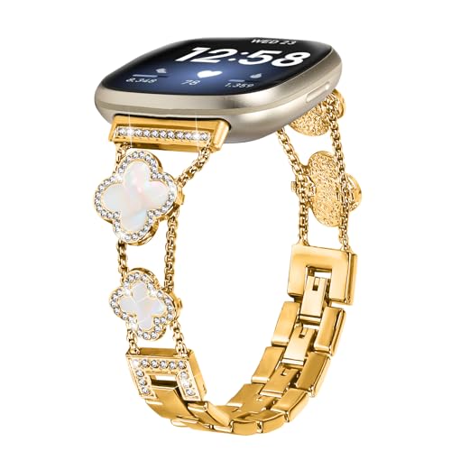 KUTEWEU Metallrem kompatibel med Fitbit Versa 4/Fitbit Versa 3/Sense 2 klockband, smalt bling aluminiumarmband sportarmband ersättning för Sense/Sense 2 Smartwatch-tillbehör, En storlek, Metall, Ingen