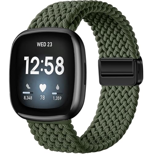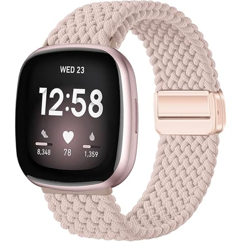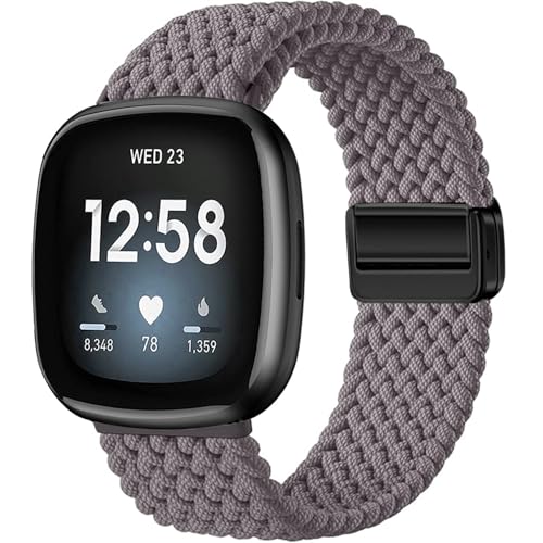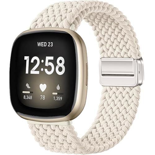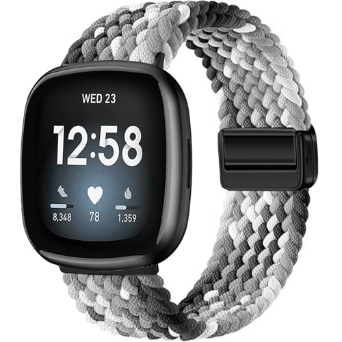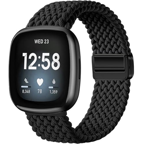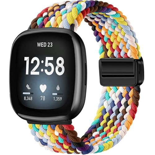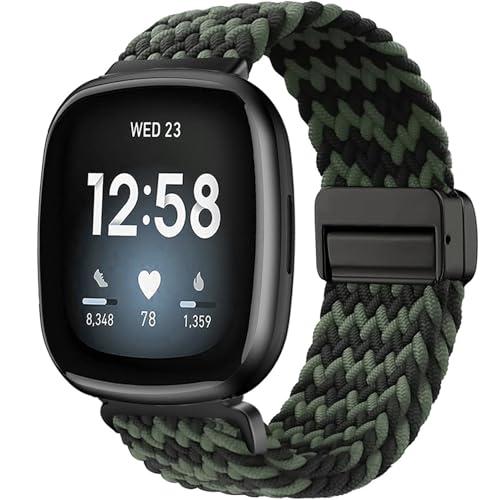 Issinlky Nylonflätat armband för Fitbit Versa 3/Versa 4, Elastiskt armband för Fitbit Sense 2/Sense Smartwatch