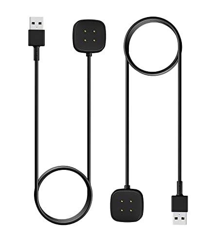 Sinoacc Laddare för Fitbit Sense Versa 3 Smartwatch 3,3 fot snabbladdande ersättning Fitbit Sense 2, Sense, Versa 4, Versa 3 laddare USB-laddningskabel docka (inte för Versa 2/Versa 1/se/Versa lite) -2-pack