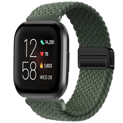 System-S Armband 22 mm av nylon för Fitbit Versa 4/Versa 3/Sense 2/Sense/Versa Lite/Versa 2/Versa Smartwatch i grönt, Mörkgrön, Eine Grösse, Klassisk