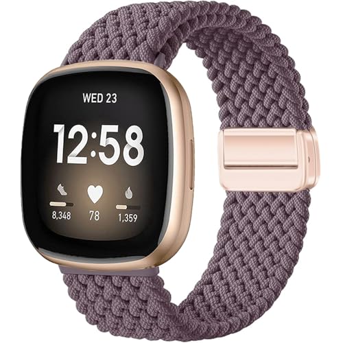 System-S Armband 22 mm av nylon för Fitbit Versa 4/Versa 3/Sense 2/Sense/Versa Lite/Versa 2/Versa Smartwatch i lila, lila, Eine Grösse, Klassisk