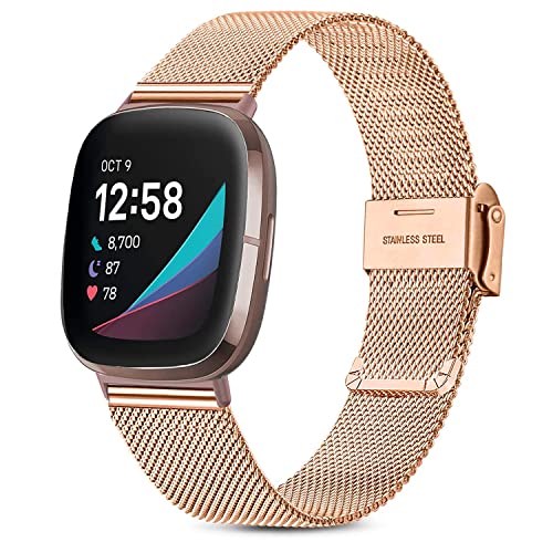 System-S Armband Milanese av metall för Fitbit Versa 4 3 2 Sense Smartwatch i rosa, Metallisk/rosa, Eine Grösse, Klassisk
