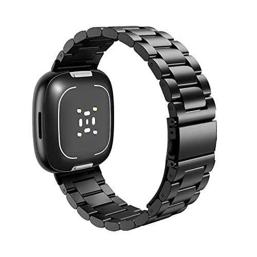 MoKo Metal Strap Compatible with Fitbit Versa 4/Versa 3/Sense 1/2, Stainless Steel Replacement Watch Band Wristband for Men Women, Black