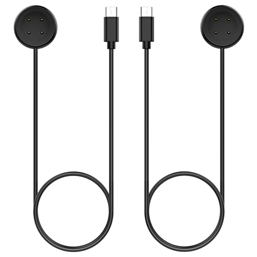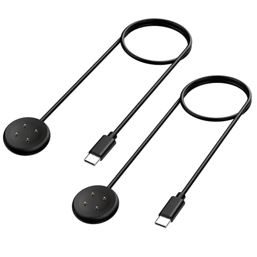 TiMOVO Charger Cable Compatible with Google Pixel Watch 3/Pixel Watch 2 & Fitbit Versa 4/Versa 3/Sense 2/Sense/Ace LTE, 2Pack 3.3Ft USB Type-C Fast Magnetic Charging Cable Cord Accessories,Black,4 Pin