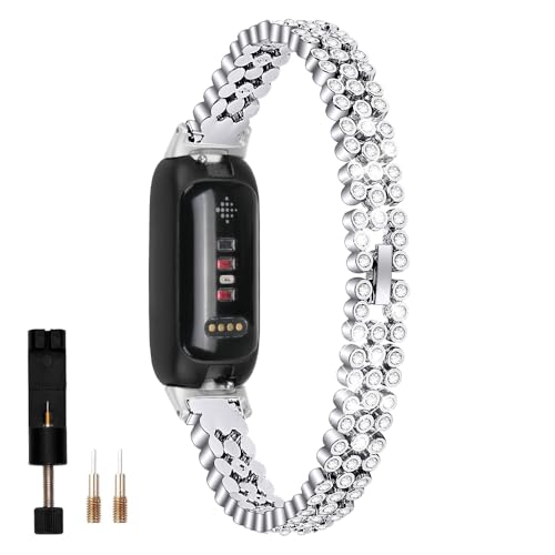 SMYAOSI Dam armband kompatibelt med Fitbit Inspire 3, Metal Bling Ersättningsarmband i Rostfritt Stål Glittrande Armband för Fitbit Inspire 3 Smart Watch Band, Rostfritt stål, Ingen sten
