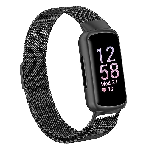 Rem för Fitbit Inspire 3, Justerbar Metallurband med Magnetslinga, Fitness Watch Rem, Tillbehör till Fitbit Inspire 3(Svart)