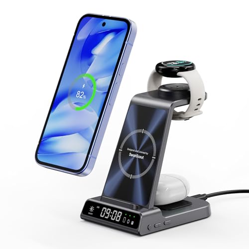 SwanScout Trådlös Laddare för Google Pixel Watch 3/2/Fitbit Versa 4/3, 3 i 1 Laddstation för Google Pixel 10a/10 Pro/10 Pro XL/10/9a/8/7/6, Wireless Charger för Pixel Buds (Not för Pixel Watch 4/1)