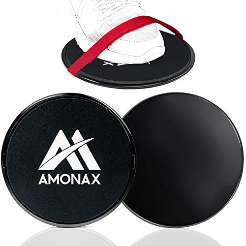 Amonax Core-reglage, dubbelsidiga glidskivor med remmar. Magglidare för bålträning fitness på gym och hem, dubbelsidig skjutreglage styrka segelpar för matta, trä, klinkergolv