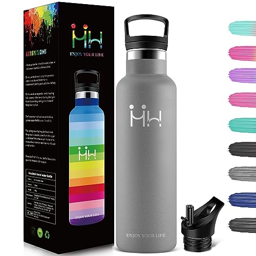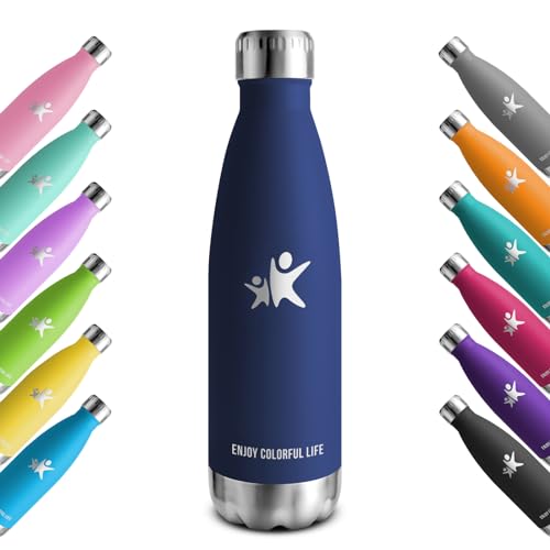 HoneyHolly Vakuum isolerad vattenflaska i rostfritt stål 500 ml, BPA-fri vattenflaska, läckagesäker termosflaska, kolsyra, lämplig för skola, sport, cykel, fitness, utomhus