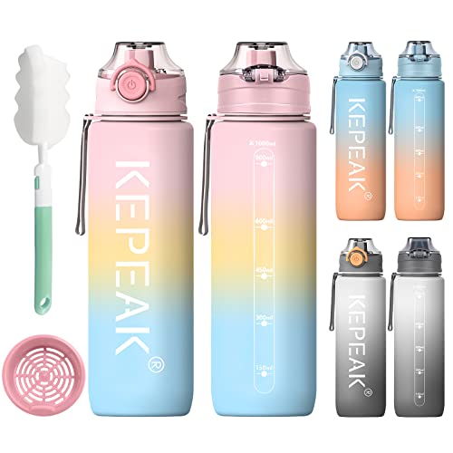 KEPEAK Vattenflaska 1 l, läckagesäker med sugrör eller sil, BPA-fri, vattenflaska för universitet, dagis, sport, fitness, cykel, utomhus, lätt, okrossbar, hållbar