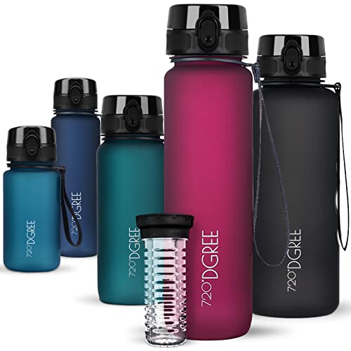 720°DGREE Vattenflaska 1l Sport "uberBottle" softTouch +Sikta - BPA-fri - Vattenflaska för universitet, arbete, fitness, cykel, utomhus, jobb - Tritan sportflaska - lätt, okrossbar, hållbar
