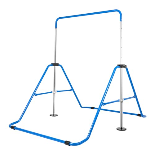 DIFU gymnastikstång gymnastik rack 4,25 fot gymnastikstång räckstång trädgård barn pull up-stång sträcksystem horisontell träningsbar, träningsutrustning utomhus fitness justerbar höjd, blå