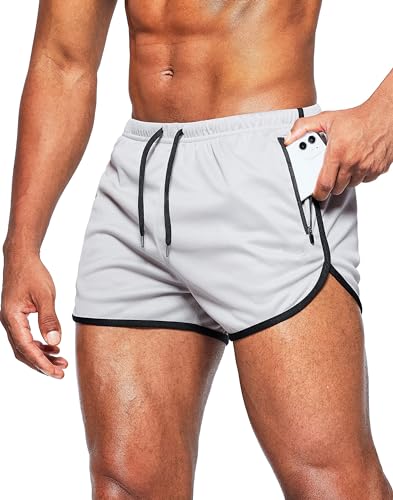 Alienjoy Herrshorts, sportbyxor, löpshorts, 3 tum, sommar, träningsbyxor, fitness, utomhus, sportbyxor, atletiska joggingshorts med dragkedjefickor, GRÅ, S