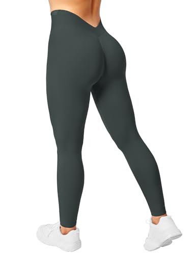 ZAAYO Sportleggings dam V-rygg scrunch butt leggings hög midja gym sportbyxor crossback för sport gym fitness, GRÅ, XL