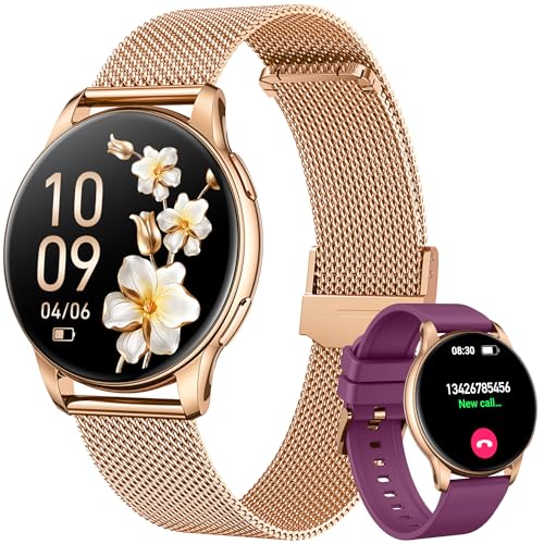 Smart Watch Kvinnor med Telefonsamtal, Talassistent, Smartwatch 3 Armband, 1,09” Rund HD-skärm Smart klocka, Sömnspårare Pulsmätare, 123 Sportlägen, Fitness tracker Smartwatch för Android iOS (Rosa)