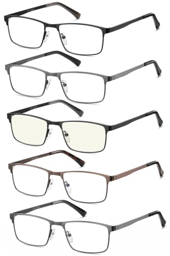 EYECEDAR 5-pack läsglasögon män metallram rektangulär stil rostfritt stål material fjädergångjärn med dator glasögon läsare 1,00