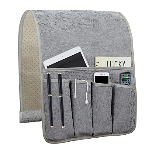 NB Armstöd till soffan, förvaring för fjärrkontroll med 5 fickor, halkfri fjärrkontrollhållare till soffa, fåtölj, sofftillbehör (grå, 89 cm x 31,5 cm)