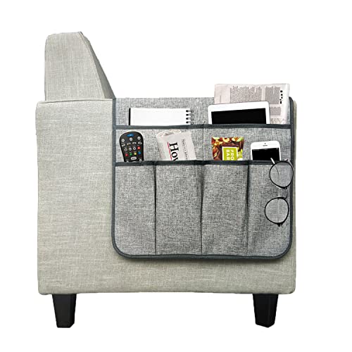Halkfri armstödsorganisatör för soffa, soffa, vilstol, fjärrkontroll, fåtölj, caddie med 5 fickor, förvaring för tidskriftsböcker, TV-fjärrkontroll, mobiltelefon, glasögon, laddare (mörkgrå)