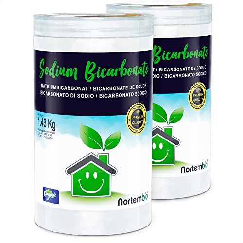 Nortembio Ekologisk Natriumbikarbonat 2x1,43 Kg. 100% Naturligt Ursprung. Aluminiumfri. Fläckborttagare, Deodorant och Blekmedel. Baking Soda för Rengöring med E-book Inkluderad.