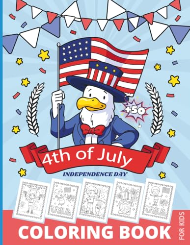 4th Of July Independence Day Kids Coloring Book: Celebrate 4th of July with Patriotic Kids Coloring Pages: Holiday Fun with USA Flag, Symbols & Icons
