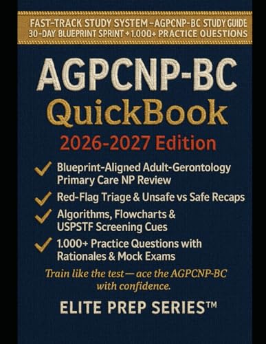 AGPCNP-BC QuickBook 2026–2027: 30-Day Blueprint Sprint with 1,000+ Practice Questions, Detailed Rationales, Flowcharts, Red-Flag Triage & Mock Exams for the Adult-Gerontology Primary Care NP Certification