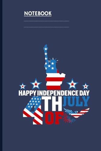 Happy Independence Day 4th Of July With Statue Of Liberty And American Flag Stars On Dark Blue Cover: Notebook