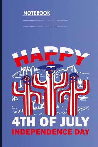 Happy 4th Of July Independence Day With American Flag Cactus Trio On Blue Cover: Notebook