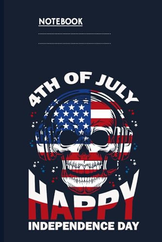 4th Of July Happy Independence Day With American Flag Skull Wearing Headphones On Dark Navy Cover: Notebook