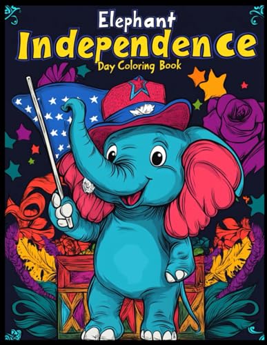Elephant Independence Day Coloring Book: Elephant with American Flag and Hat – Fun 4th of July Activity Book – Holiday Coloring for Teens & Adults