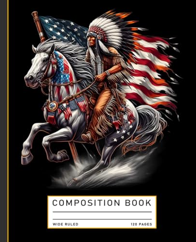 Native American Day Flag Indian Riding Horse 4th of July Composition Book