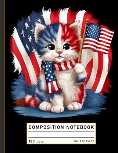 Composition Notebook College Ruled: Patriotic Cat with USA Flag Design, Memorial Day and 4th of July Journal for American Pride